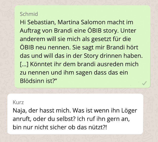Im Folgenden die wichtigsten Auszüge aus den öffentlich gewordenen Chats des Kurz-Vertrauten. World Agence France-Presse Updated. Whatsapp mit den Charakteren von Nerdy Sebastian.